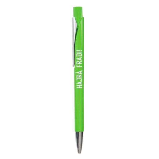 A műanyag toll zöld színben pompázik, melyet a "Hajrá Fradi!" felirat tesz igazán egyedivé.