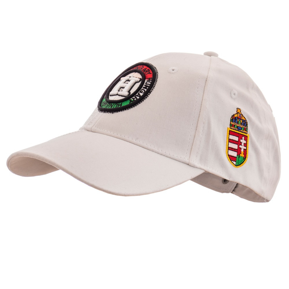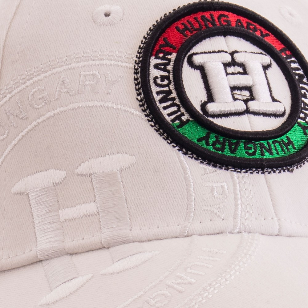 Fehér. Hímzett H-betűvel az elején és hímzett Magyarország címerrel. Állítható fejmérettel. Junior méret. >Anyaga: 100% pamut