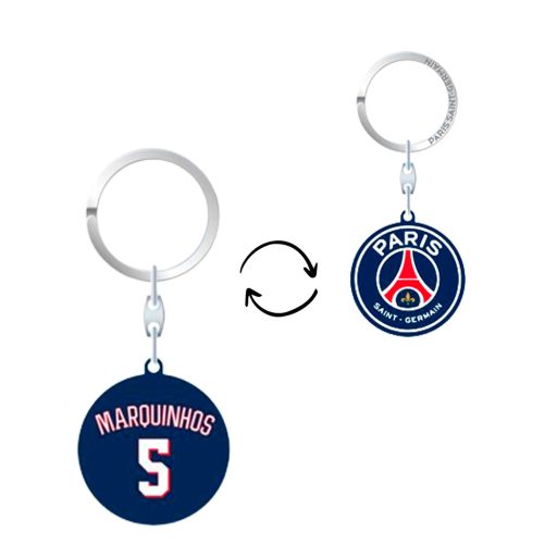 A futballrajongók számára nélkülözhetetlen kiegészítő ez a PSG kulcstartó, melynek központi részén a híres Marquinhos 5-ös számú játékos neve és száma. Ez a kulcstartó nem csak kulcsaidat tartja össze, de ki is fejezi a Paris Saint-Germain iránti rajongásod. A kör alakú bilétával rendelkező kulcstartó anyaga PVC és fém, amely garantálja a termék tartósságát és hosszú élettartamát. Mérete 9cm * 4cm, így kényelmesen elfér a zsebben vagy a táskában. Ez az eredeti licenszes termék egyenesen Franciaországból érkezett, hogy hozzáadhasson a futballélményedhez és mindig emlékeztessen a kedvenc csapatodra.