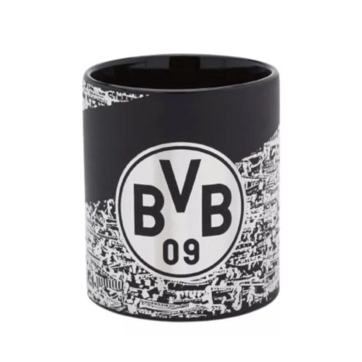 Készüljön fel a következő meccsre ezzel a porcelánból készült, fekete Dortmund bögrével, melynek díszítése a híres Südtribüne mintáját követi. A bögrére rákerült a BVB logó, így minden korty kávéval vagy teával a kedvenc csapatunkhoz közelebb kerülhetünk. A bögre 0,3 literes űrtartalommal rendelkezik, tökéletes méret a reggeli kávéhoz vagy a meccs közbeni forró italhoz. Mosogatógépben mosható, így a használata és tisztítása is egyszerű. Mikrohullámú sütőben is használható, így akár a meccs közben is gyorsan melegíthetünk benne italt. Eredeti licenszelt termék, közvetlenül Németországból. Mutassa meg, hogy Ön igazi Dortmund drukker!