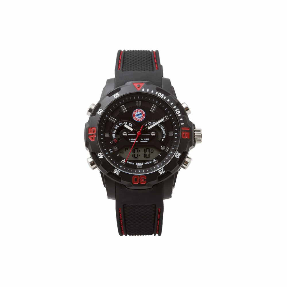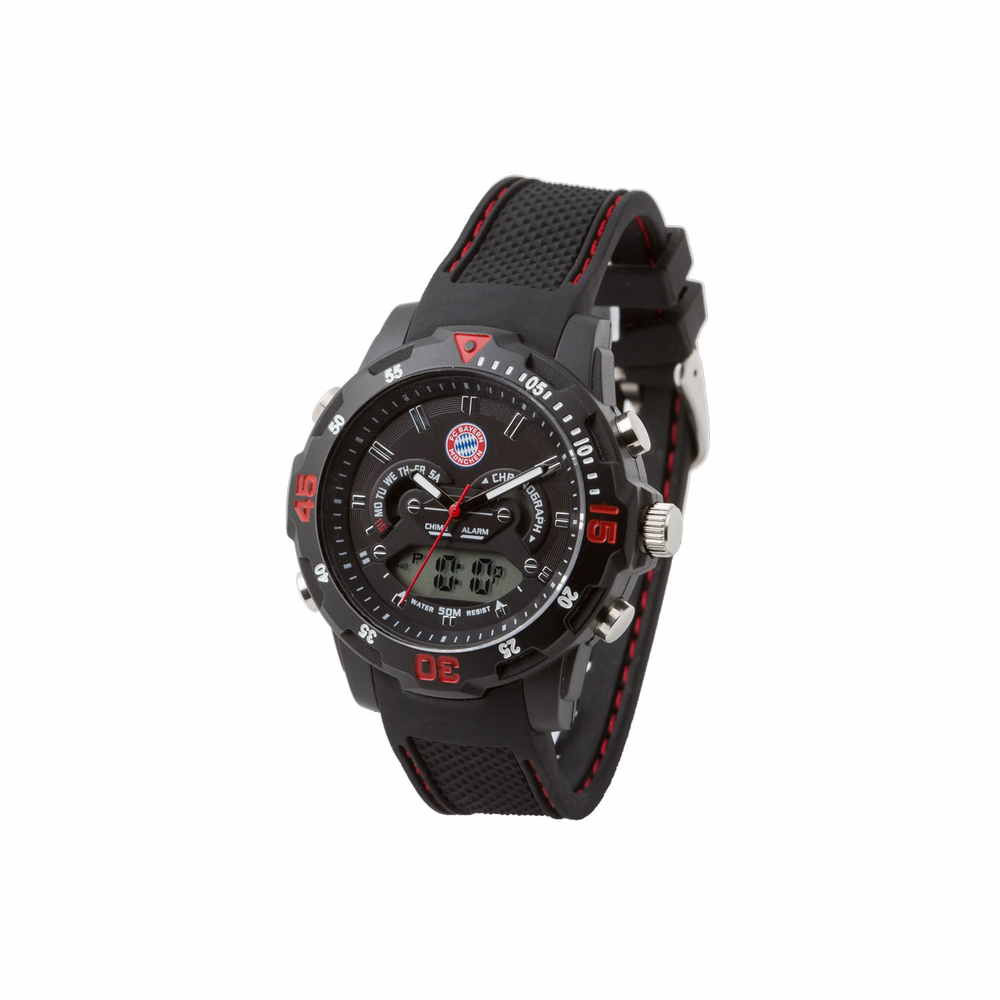 Ez a Bayern München digitális karóra tökéletes ajándék minden kis futballrajongónak! A műanyag és rozsdamentes acél kombinációja biztosítja a strapabíróságot és tartósságot. A fekete szín univerzális és minden ruhadarabhoz illik. Az analóg és digitális kijelzővel a gyerekek könnyedén megtanulhatják az idő olvasását. A csapat logója a számlapon büszkén hirdeti a hűségüket a Bayern München iránt. Eredeti licenszelt termék, egyenesen Münchenből - a minőség garantált. Mutassuk meg a gyerekeknek, milyen az igazi futball szenvedély!