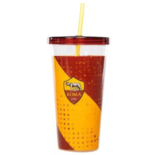 Büszkélkedj kedvenc csapatoddal ezzel a színes AS Roma pohárral, melyet különösen a futballrajongóknak terveztünk. A pohár kiváló minőségű műanyagból készült és bordó-sárga színű, emellett az AS Roma hivatalos címerével és feliratával van ellátva. 5 dl-es űrtartalmának köszönhetően bőséges helyet ad kedvenc italodnak, a hozzá tartozó szívószál pedig garantálja, hogy még a legizgalmasabb meccsek alatt is könnyedén frissíthetsz. A pohár tetején található tető megakadályozza az ital kifröccsenését. Bár a pohár mosogatógépben mosható, mikrohullámú sütőben nem használható. Ez a termék eredeti licensszel rendelkezik és közvetlenül Olaszországból származik. Készülj fel a következő meccsre ezzel a kiváló pohárral!
