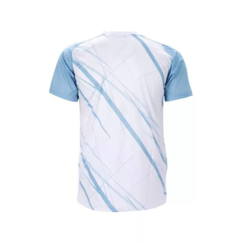 A mez elegáns mintázata és kék-fehér színe minden szem felé fordítja a figyelmet,