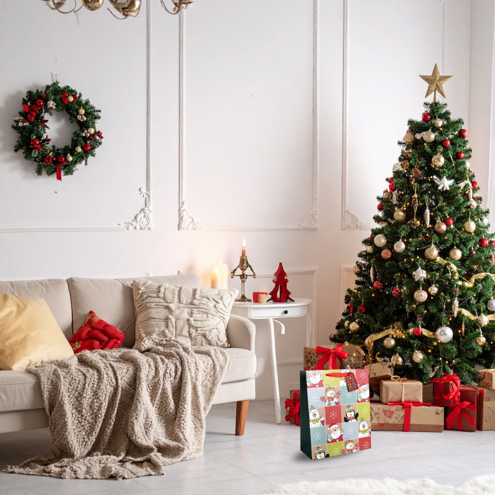 Praktikus és mutatós karácsonyi dísztasak, amely tökéletes választás ajándékok elegáns csomagolásához.