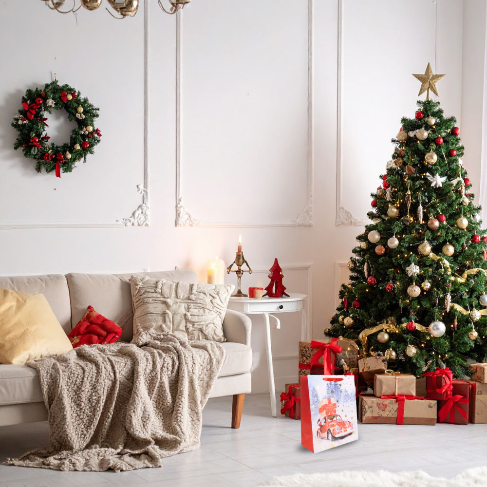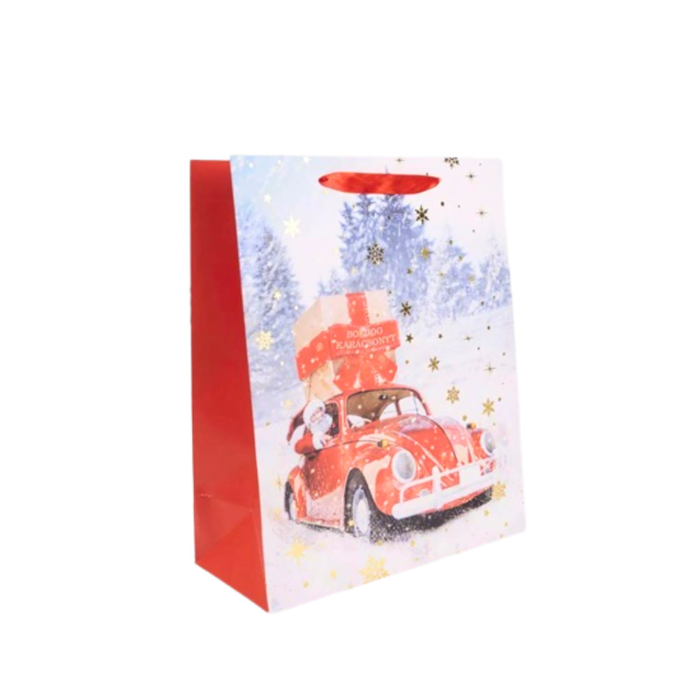 Praktikus és mutatós karácsonyi dísztasak, amely tökéletes választás ajándékok elegáns csomagolásához.