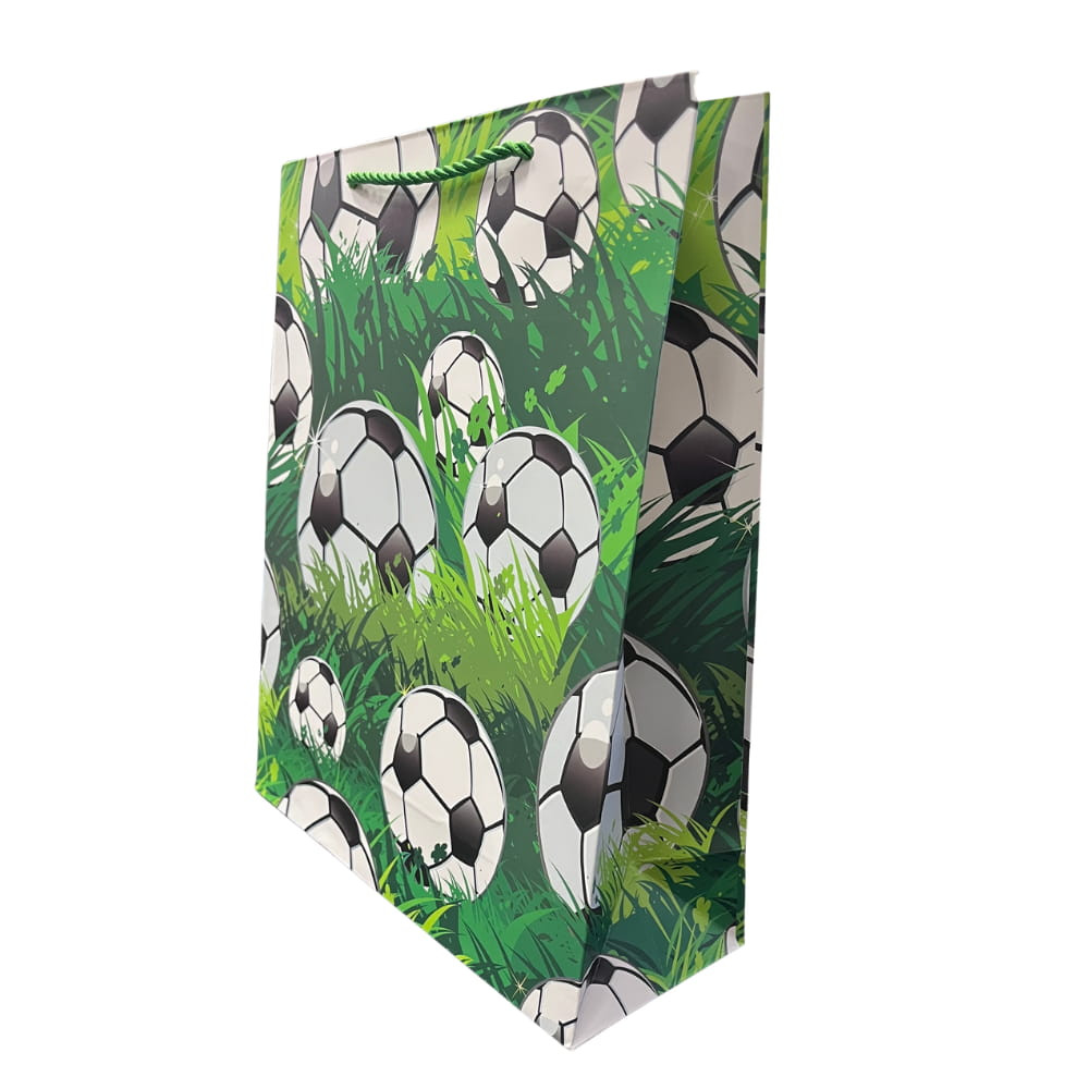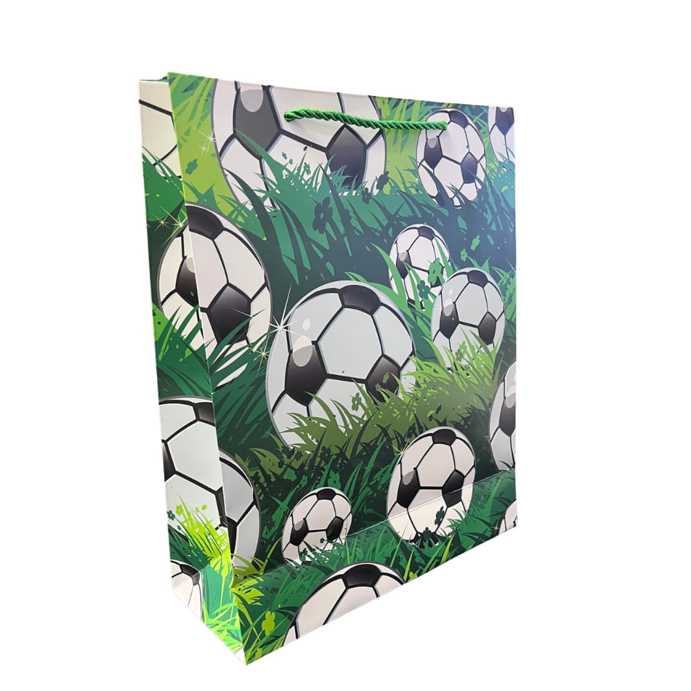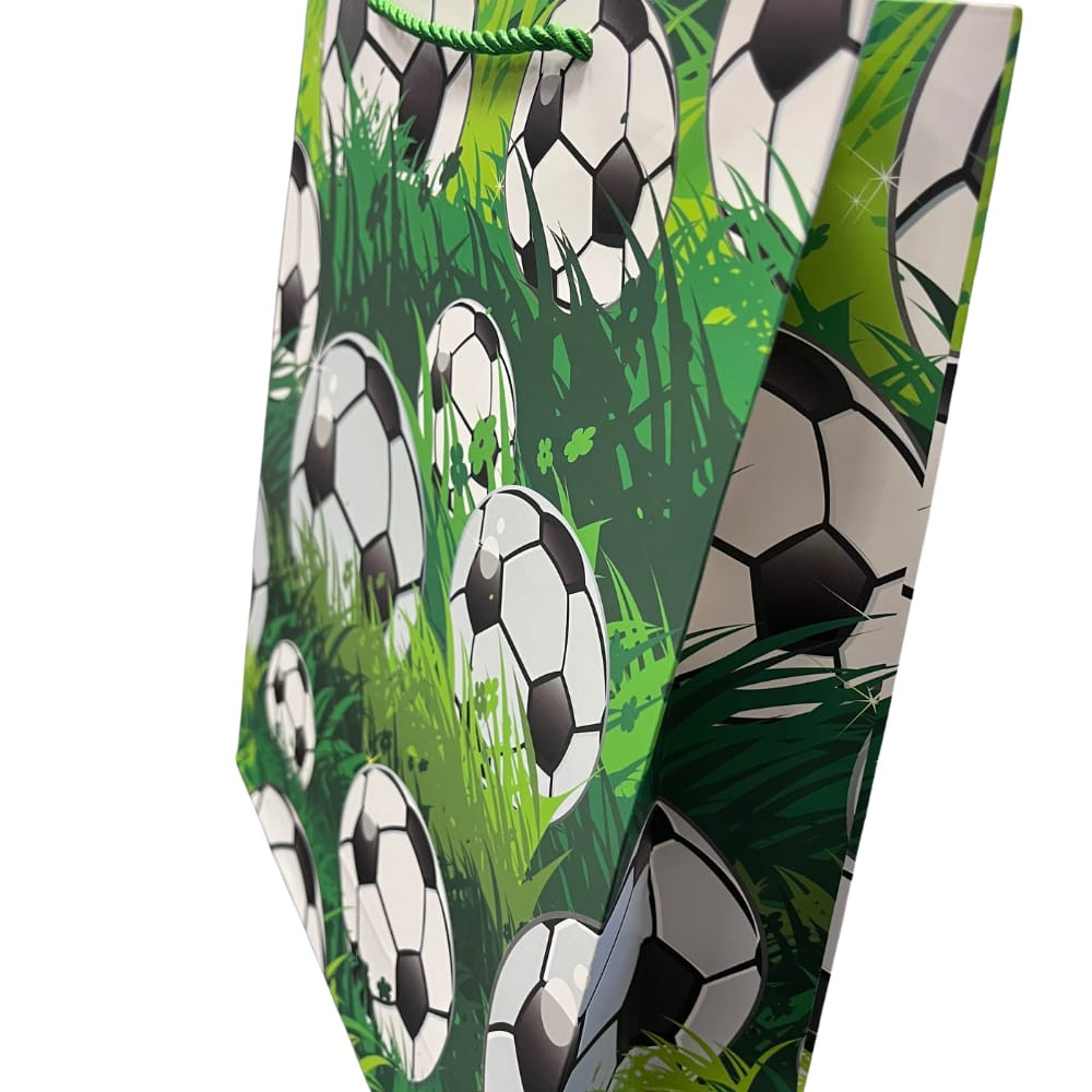 A természetes hatású, zöld füves háttér és a dinamikus focis dizájn friss, lendületes megjelenést biztosít, miközben a strapabíró kialakítás garantálja a megbízható használatot. Kiváló választás nagyobb ajándékok csomagolásához.