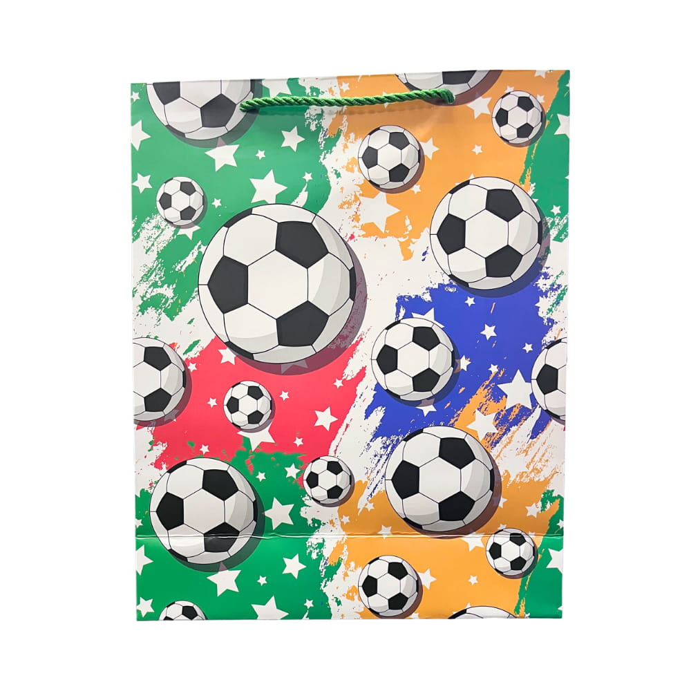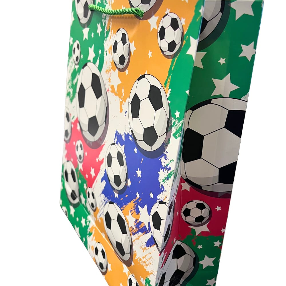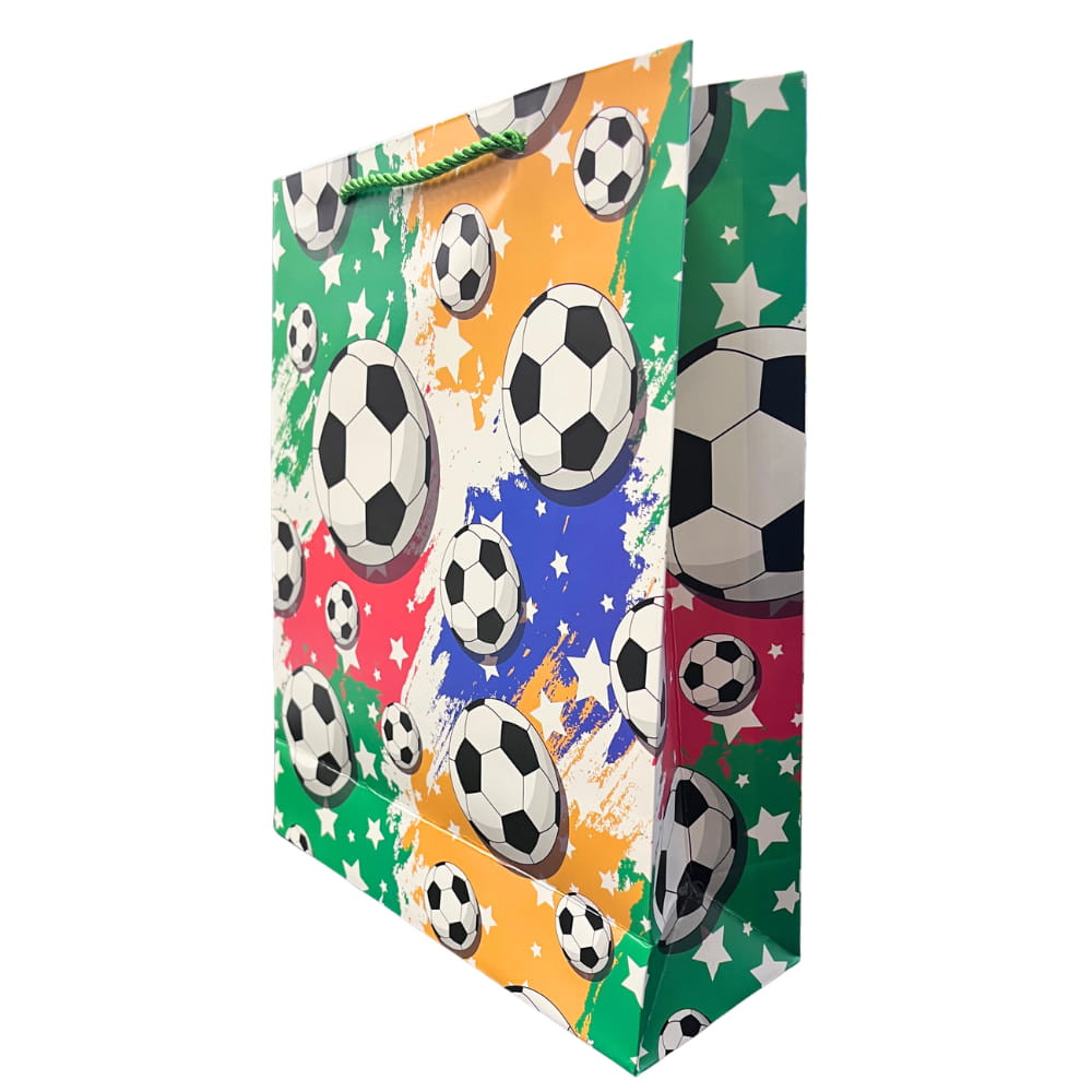 Ez a színes focis dísztasak tökéletes választás minden futballrajongó számára, aki egy igazán látványos és energikus megjelenést keres.