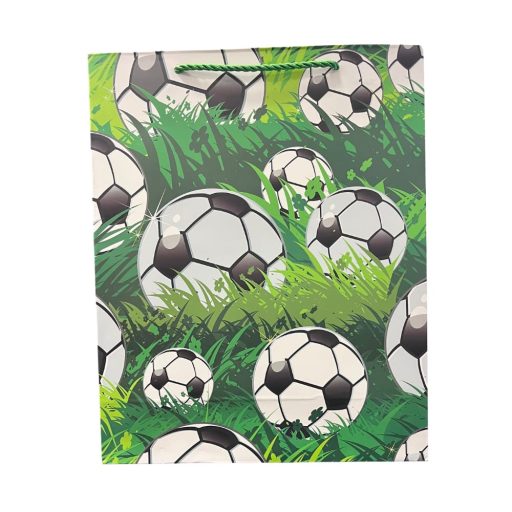 Ez a zöld, füves focis mintájú dísztasak tökéletes választás minden rajongó számára, aki már az első pillanattól kezdve sportos élményt szeretne nyújtani.