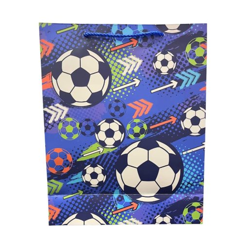 Ez a kék színű, focis mintájú dísztasak tökéletes választás minden futballrajongó számára, aki már az ajándékozás pillanatában is különleges élményt szeretne nyújtani.