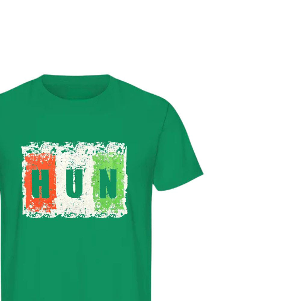 Ez a zöld póló nem hivalkodik, de pontosan tudja, mit képvisel: a koptatott piros-fehér-zöld „HUN” felirat alatt a Hajrá Magyarok szöveg ott van, mint a szurkolói lelked lenyomata. Streetwear a magyar büszkeség jegyében.