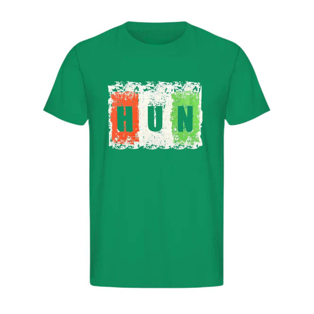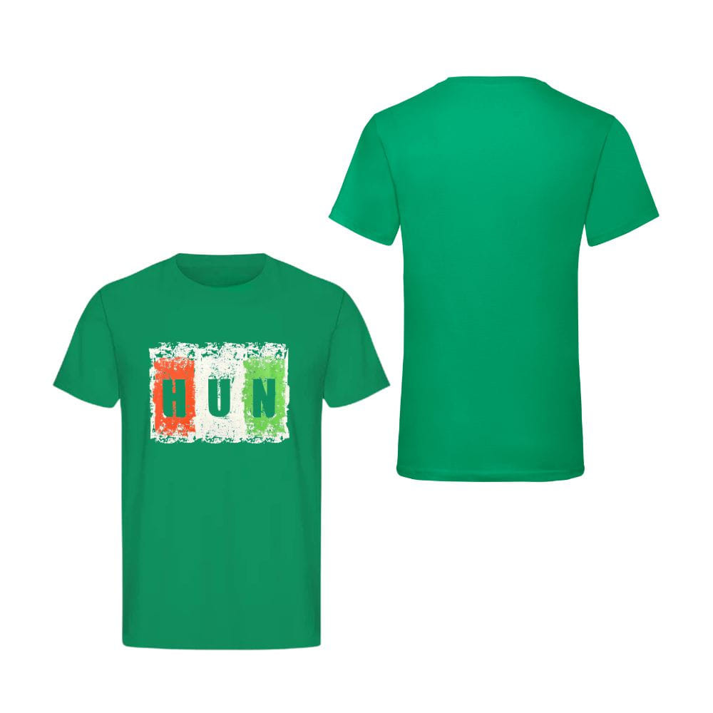 Ez a zöld póló nem hivalkodik, de pontosan tudja, mit képvisel: a koptatott piros-fehér-zöld „HUN” felirat alatt a Hajrá Magyarok szöveg ott van, mint a szurkolói lelked lenyomata. Streetwear a magyar büszkeség jegyében.