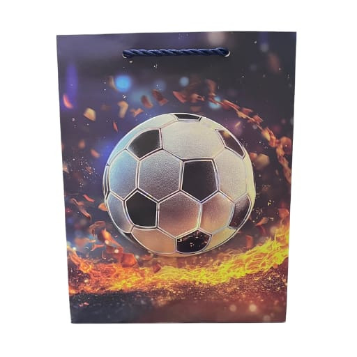 Dobd fel az ajándékozás élményét ezzel a látványos focis dísztasakkal! A 3D hatású focilabdát intenzív, tüzes háttér teszi igazán figyelemfelkeltővé.