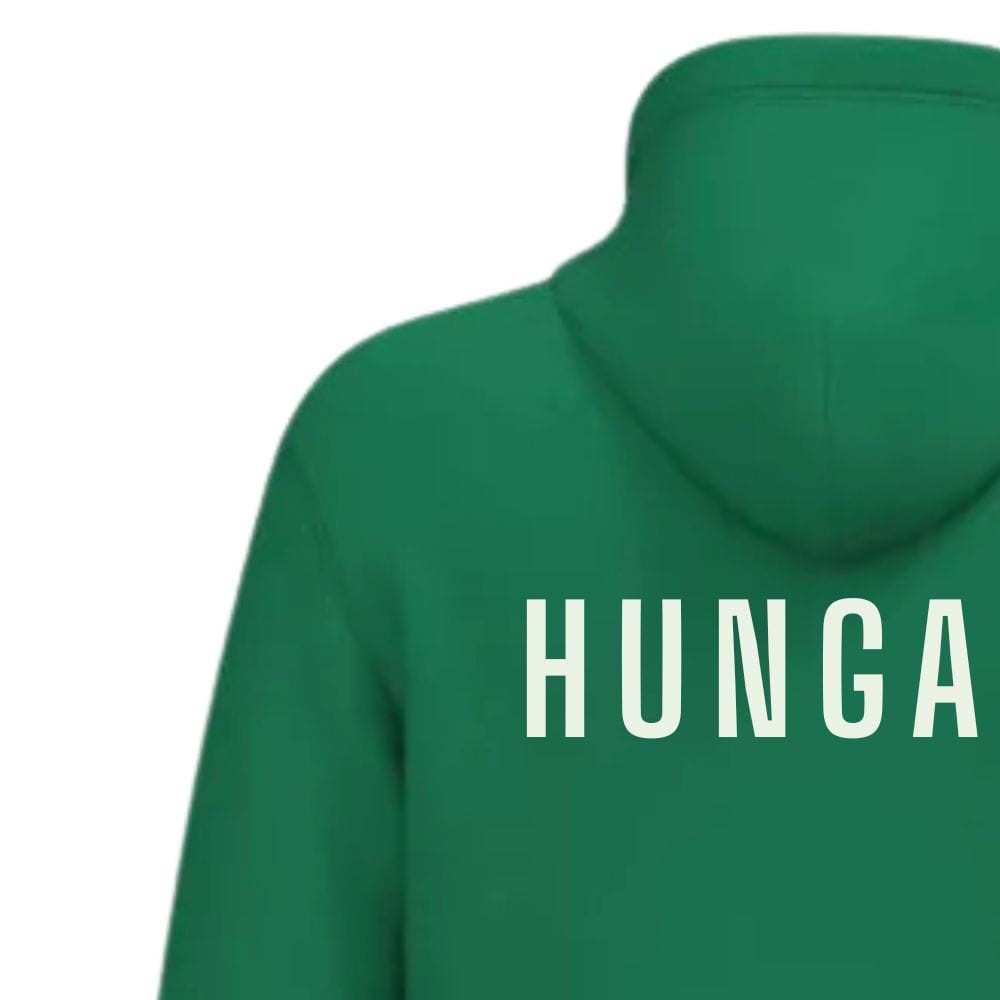 Sportos és hazafias stílus a mindennapokra! Ez a zöld, cipzáras pamut pulóver a mellrészén „Hungary” felirattal és a nemzeti címerrel díszített, így tökéletes választás szurkoláshoz, sporthoz vagy hétköznapi viselethez.