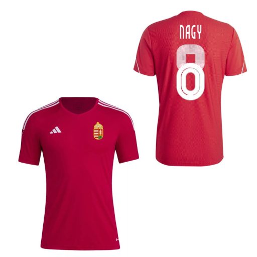 Viseld büszkén a színeinket a NAGY nevét viselő piros Adidas futballmezben! Ez a felnőtt méretű mez a klasszikus piros színével és a mellkason elhelyezett Magyarország címerével garantáltan felkelti a figyelmet. Az oldalán található finom fehér csík egyedi stílust kölcsönöz neki. A magas minőségű 100% poliészter anyag biztosítja a tartósságot és a kényelmet, legyen szó izgalmas meccsnézésről vagy egy hűvös őszi délutáni futásról. Kerek nyakrésszel és hímzett Adidas logóval ellátott, ez a mez igazi 'must-have' minden magyar futballrajongó számára, különösen azoknak, akik NAGY rajongói. Mosógépben mosható 40 fokos vízben, így a tisztítása is egyszerű. Eredeti licencelt termék, így biztos lehetsz benne, hogy valódi, hiteles szurkolói darabot vásárolsz. Öblítő használata tilos - vigyázz a színeire, mint ahogy a magyar csapat is vigyáz a labdára a pályán!