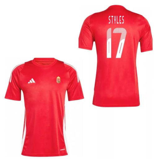 Büszkén viseld a színeinket a STYLES nevével ellátott Magyarország mez szurkolói Adidas piros felnőtt méretű pólóval! A klasszikus piros szín és a mellkason díszelgő Magyarország címer garantáltan felkelti a figyelmet, míg a finom fehér csík az oldalán egyedi stílust kölcsönöz neki. A kiváló minőségű 100% poliészter anyag biztosítja a tartósságot és a kényelmet, legyen szó izgalmas meccsnézésről vagy egy hűs őszi délutáni futásról. Kerek nyakrésszel és hímzett Adidas jellel ellátott, ez a póló igazi 'must-have' minden magyar futballrajongó számára. Mosógépben mosható 40 fokos vízben, így a tisztítása is gyerekjáték. Eredeti licencszes termék, így biztos lehetsz benne, hogy valódi, hiteles szurkolói darabot vásárolsz. Öblítő használata tilos - vigyázz a színeire, mint ahogy a magyar csapat is vigyáz a labdára a pályán!