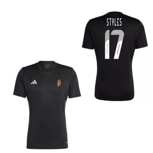 Ez a fekete Magyarország mez kifejezetten neked készült, hogy szurkolhass a kedvenc csapatodnak stílusosan és büszkén viselhesd STYLES nevét! Az Adidas minőségi gyártása révén készült mezünk elején magyar címer, az Adidas logó, és STYLES neve látható. Az anyaga 100% poliészter, amely garantálja a kényelmet és a tartósságot. Felnőtt méret, így tökéletes választás lehet minden szurkolónak. Mosása egyszerű, csak 30 fokon, kifordítva tedd a gépbe. Legyél Te a legnagyobb rajongója a magyar futballnak ezzel a menő mezzel!
