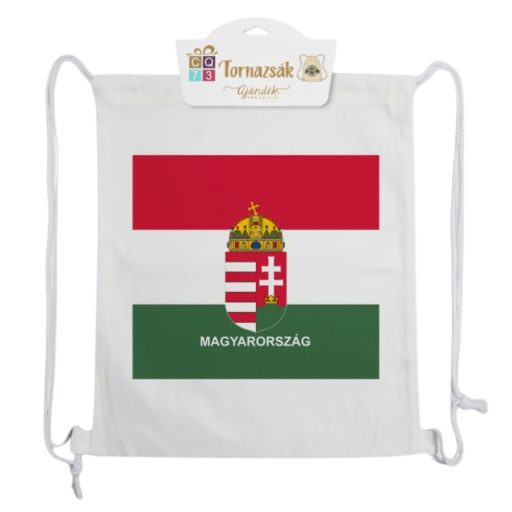 Ez a magyar tornazsák minden hazafi és focirajongó számára tökéletes választás. Alapszíne fehér, háttérén a zöld-fehér-piros színekben megjelenő Magyar Címer kiemelkedő és stílusos megjelenést biztosít.