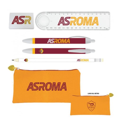 A Roma iskolai szett tolltartóval a tökéletes választás minden kis futballrajongónak. Színes és vidám, az igazi Roma FC szurkolóknak. A szett műanyagból készült, tartalmaz egy tolltartót zippzárral, egy tollat, egy ceruzát, egy radírt és egy vonalzót. Az eredeti licenszes termék egyenesen Olaszországból érkezett, hogy a tanulás ne csak kötelezettség, hanem öröm is legyen. Hódoljon a futball szenvedélyének még az iskolapadban is ezzel a professzionális Roma szettel!