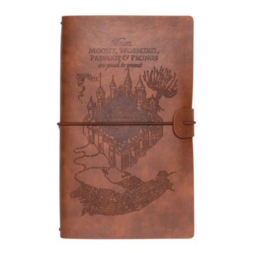 Fedezd fel a varázslat világát a Harry Potter Tekergők térképe útinaplóval! A 20x12 cm-es notesz két cserélhető füzetet tartalmaz, pontozott és vonalas lapokkal, hogy minden ötletet könnyedén rögzíthess. Kártyáknak és apróságoknak is van hely, a hátsó zsebben. A szintetikus bőrből készült borító elegáns és tartós, míg az elasztikus záródás biztosítja, hogy titkaid mindig biztonságban legyenek. Vidd magaddal bárhova, és tartsd meg a varázslatot minden egyes oldalán! Eredeti, licencelt termék.