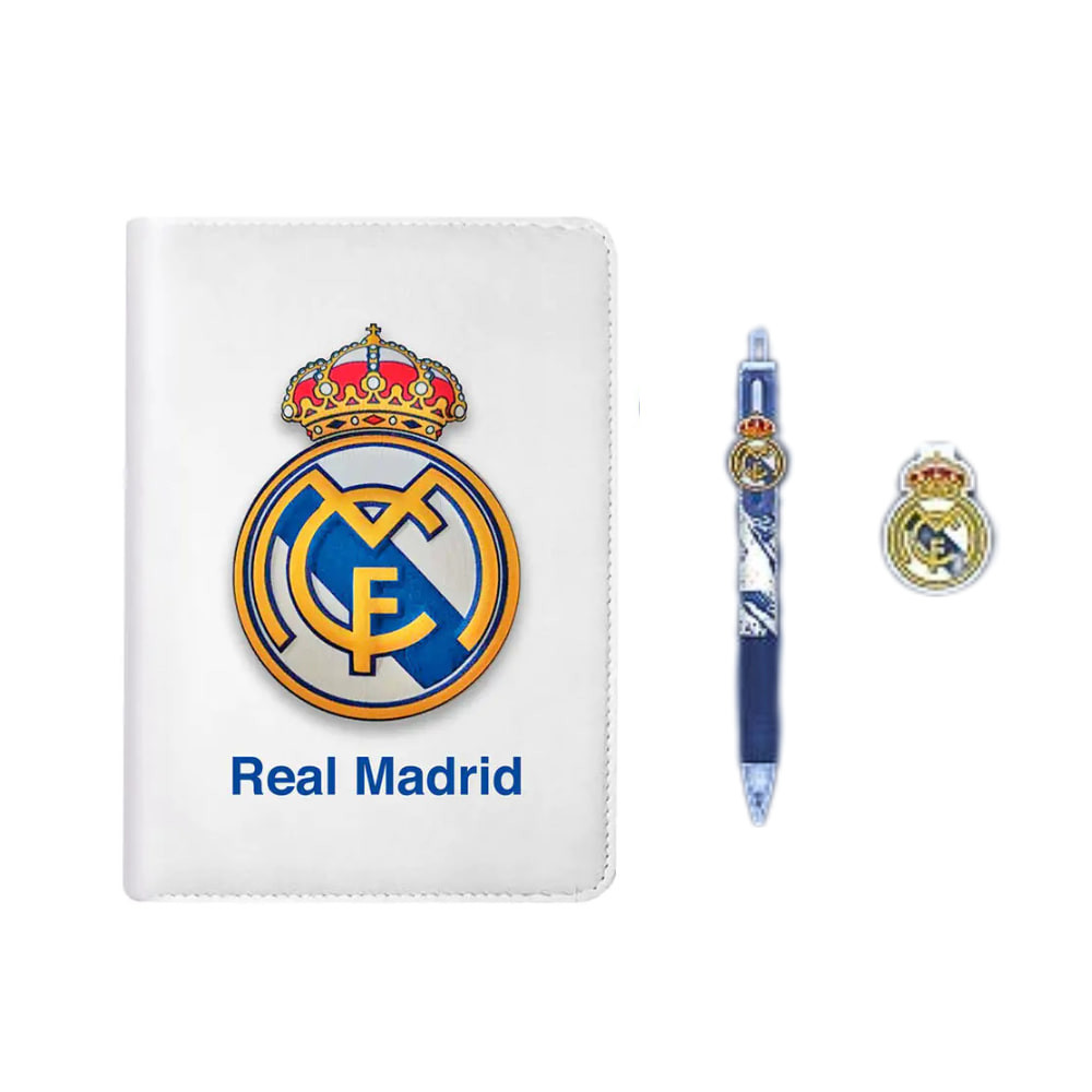 Légy mindig stílusos és szervezett ezzel a Real Madrid stressz notesz szettel! A készlet egy puha borítású, 3D címerrel díszített jegyzetfüzetet, egy Real Madrid mintás tollat és egy mágneses könyvjelzőt tartalmaz – mindezt a királyi klub elegáns dizájnjával.