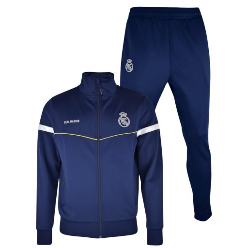 Mutasd meg a madridista büszkeségedet ezzel a hivatalos Real Madrid Navy Gold melegítő garnitúrával. A prémium hatású sötétkék és arany kombináció elegáns, ugyanakkor sportos megjelenést biztosít edzéshez és mindennapi viselethez egyaránt.