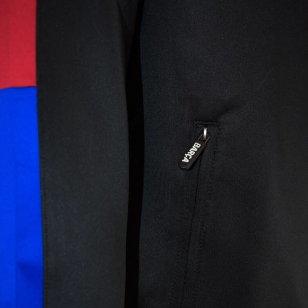 Ez az FC Barcelona gyerek melegítő felső fekete alapszínével és a karokon megjelenő Barca színekkel igazán látványos darab, miközben kényelmes viseletet biztosít a mindennapokra.