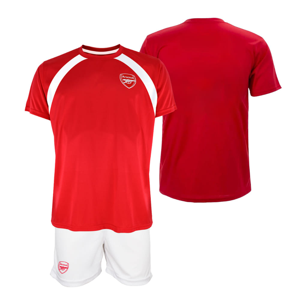 A garnitúra tartalmazza a piros felsőt, mely személyre szabható névvel és számmal, valamint a hozzá tartozó fehér nadrágot, rajta az Arsenal címerével.
