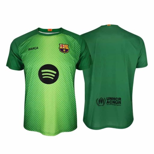 A 2025/26-os szezon hivatalos szurkolói kapusmeze modern zöld dizájnnal, gradiens átmenettel és karakteres pixeles mintázattal. Tökéletes választás minden Barça-szurkoló számára.