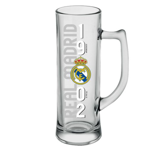 A korsó üvegből készült, és a híres Real Madrid címer díszeleg rajta, így minden korty sörrel együtt a klub iránti szenvedélyedet is növelheted.