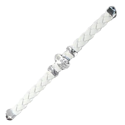 A fehér színben pompázó, 17 x 1 cm méretű karkötőn a ezüst Real Madrid logó látható, melyet minden Madridista büszkén viselhet.