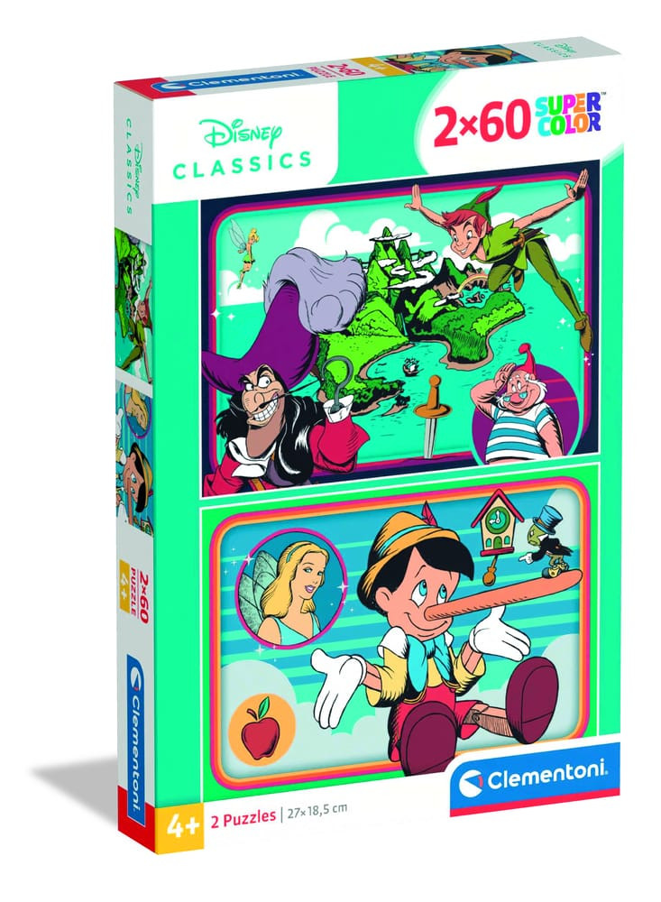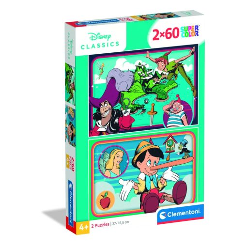 Fedezd fel a Disney klasszikusok világát ezzel a 2x60 darabos puzzle készlettel! A 19x29 cm-es méretű puzzle darabok tökéletesen illeszkednek egymáshoz, biztosítva a szórakoztató és kihívást jelentő kirakós élményt az egész család számára. A csomag két különböző képet tartalmaz, melyek a Disney mesék varázslatos világát idézik meg. Kiváló minőségű anyagokból készült, így garantáltan tartós és élvezetes játékélményt nyújt. Megrendeléskor megjegyzésben adja meg a kért színt!