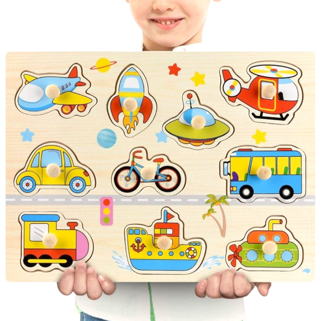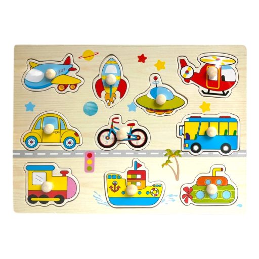 Fa ki-berakó, fafogantyús, járműves, 30x23 cm pvc csom.