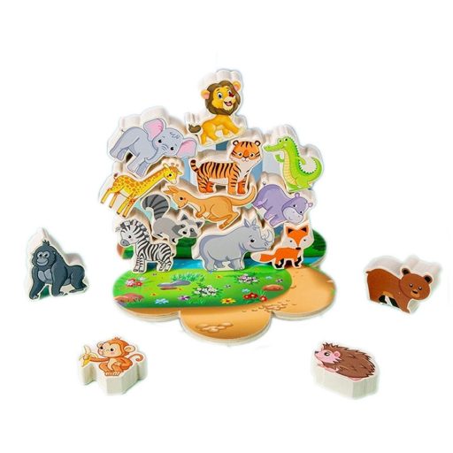 Fedezd fel a Fa egyensúlyozós játékot vadállatokkal, amely kiváló szórakozást és fejlesztést nyújt a gyermekek számára. A 21x18 cm-es játék célja, hogy a gyerekek ügyesen egyensúlyozzanak a különböző állatfigurákkal, miközben fejlesztik a kézügyességüket és a koncentrációjukat. A színes és részletgazdag kivitelezés garantáltan elnyeri a kicsik tetszését. Megrendeléskor megjegyzésben adja meg a kért színt!