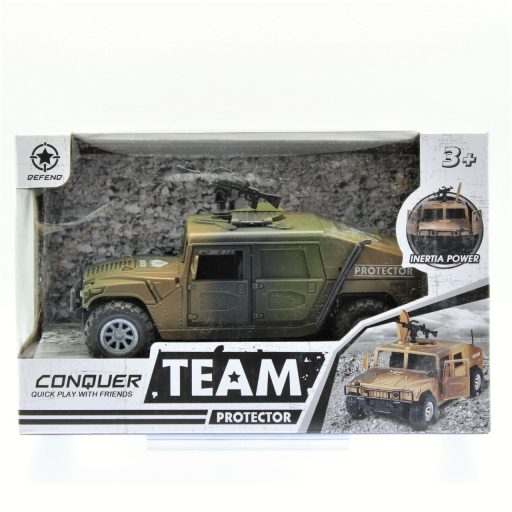 Fedezze fel a katonai terepjáró izgalmas világát ezzel a 17x9 cm-es játékkal! Az élethű hang- és fényhatásokkal ellátott jármű tökéletes választás a kis kalandorok számára, akik szeretik a katonai járműveket. A robusztus kialakítás biztosítja a hosszú élettartamot és a strapabírást, így a gyerekek bátran játszhatnak vele akár a szabadban is. A termék kétféle színben érhető el. Megrendeléskor megjegyzésben adja meg a kért színt!