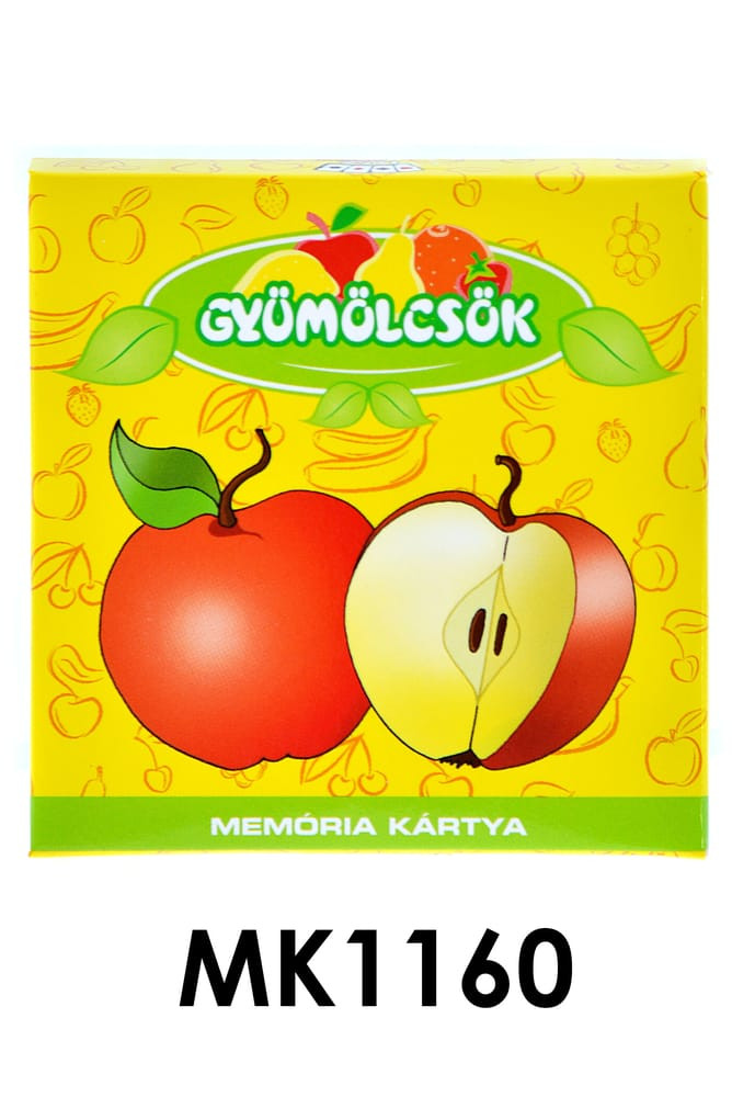 Fedezze fel a gyümölcsök világát ezzel a szórakoztató memória kártyajátékkal, amely 8,5x8,5 cm-es kártyákat tartalmaz. A játék célja, hogy fejlessze a memóriát és a koncentrációt, miközben élvezetes időtöltést biztosít az egész család számára. A kártyák élénk színeik és részletgazdag grafikáik révén könnyen felismerhetők, így a gyerekek számára is könnyen kezelhetőek. Megrendeléskor megjegyzésben adja meg a kért színt!