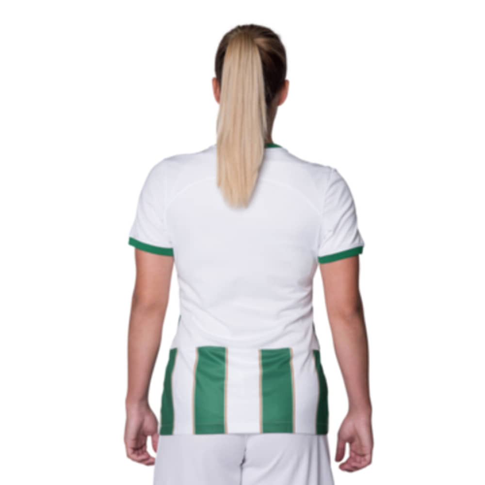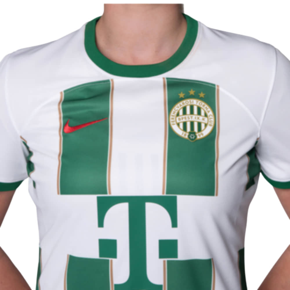 Légy részese a Fradi csapatának ezzel a női változatú, zöld-fehér színű, Nike által tervezett hazai felsővel! A Ferencvárosi Torna Club labdarúgócsapatának hivatalos 2023-24-es szezonbeli mezét viselheted, amely teljes mértékben megegyezik a csapat által használt mezzel. A karcsúsított fazon és a speciális női szabás garantálja, hogy tökéletesen illeszkedjen minden alakra.