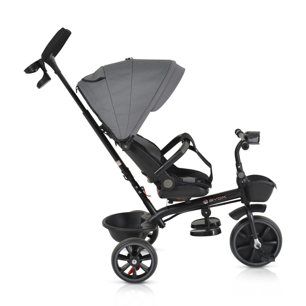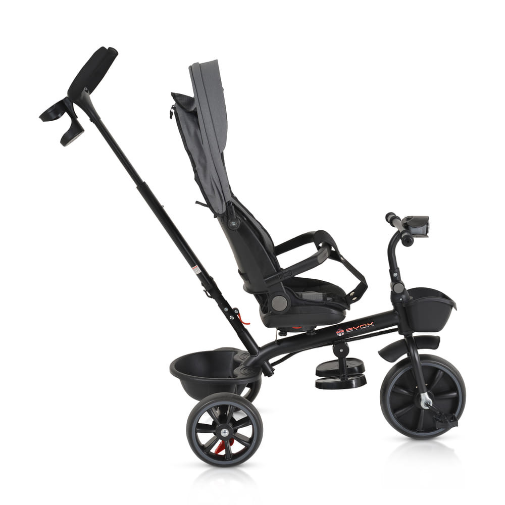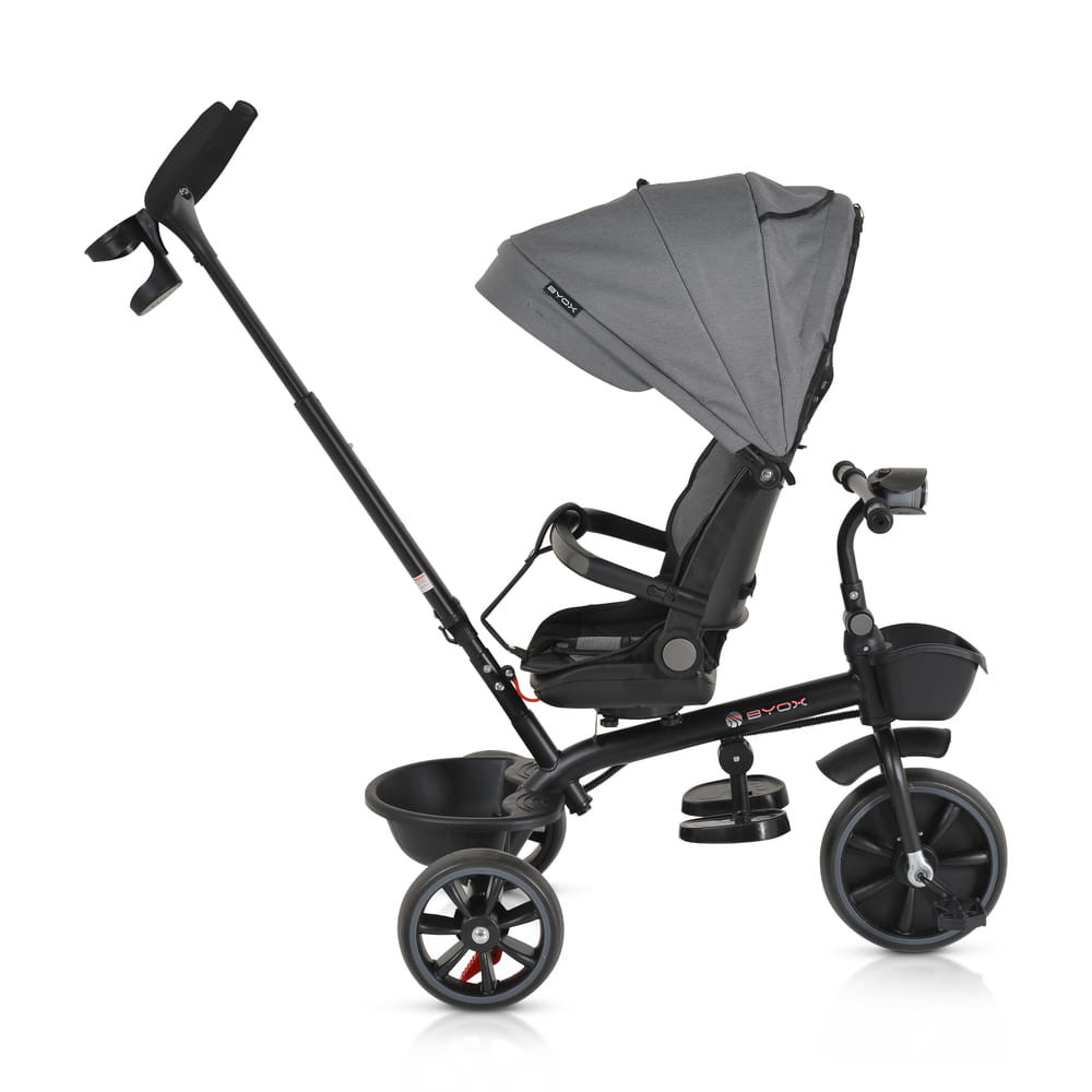 BYOX Summer tricikli szülőkaros, zenél, játék tartókkal szürke