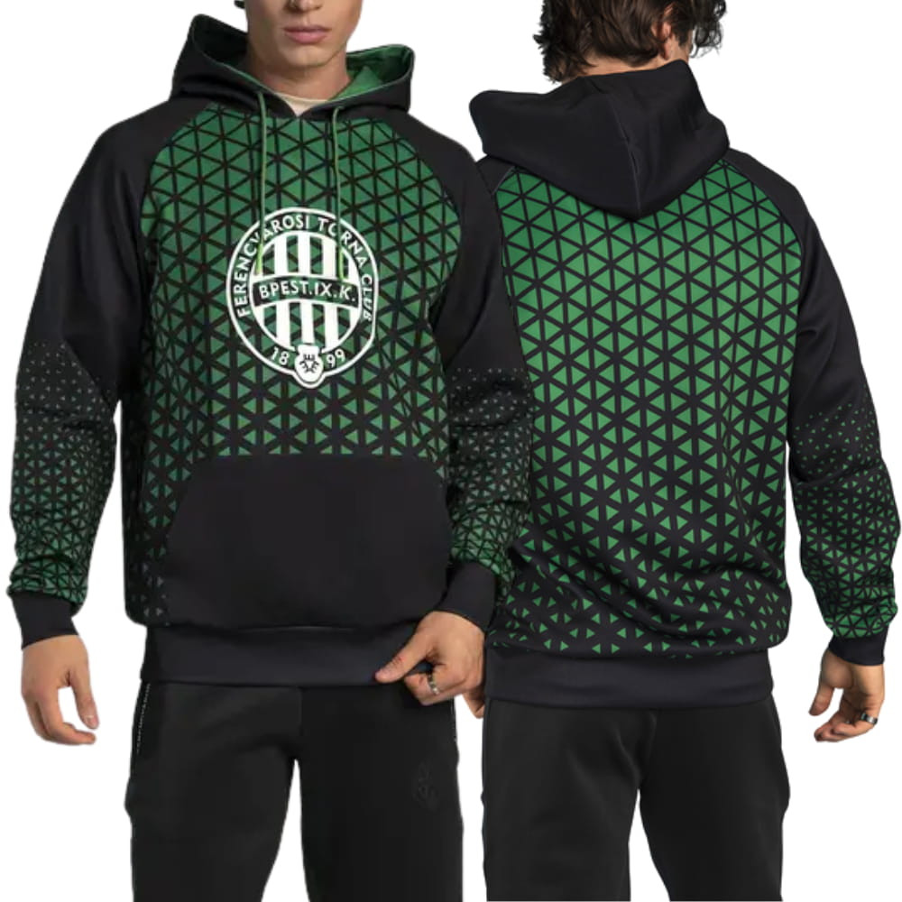A fekete alapszín zöld grafikai mintákkal modern, sportos megjelenést biztosít, míg a nagy, fehér FTC címer hangsúlyosan mutatja a klub iránti elköteleződést.