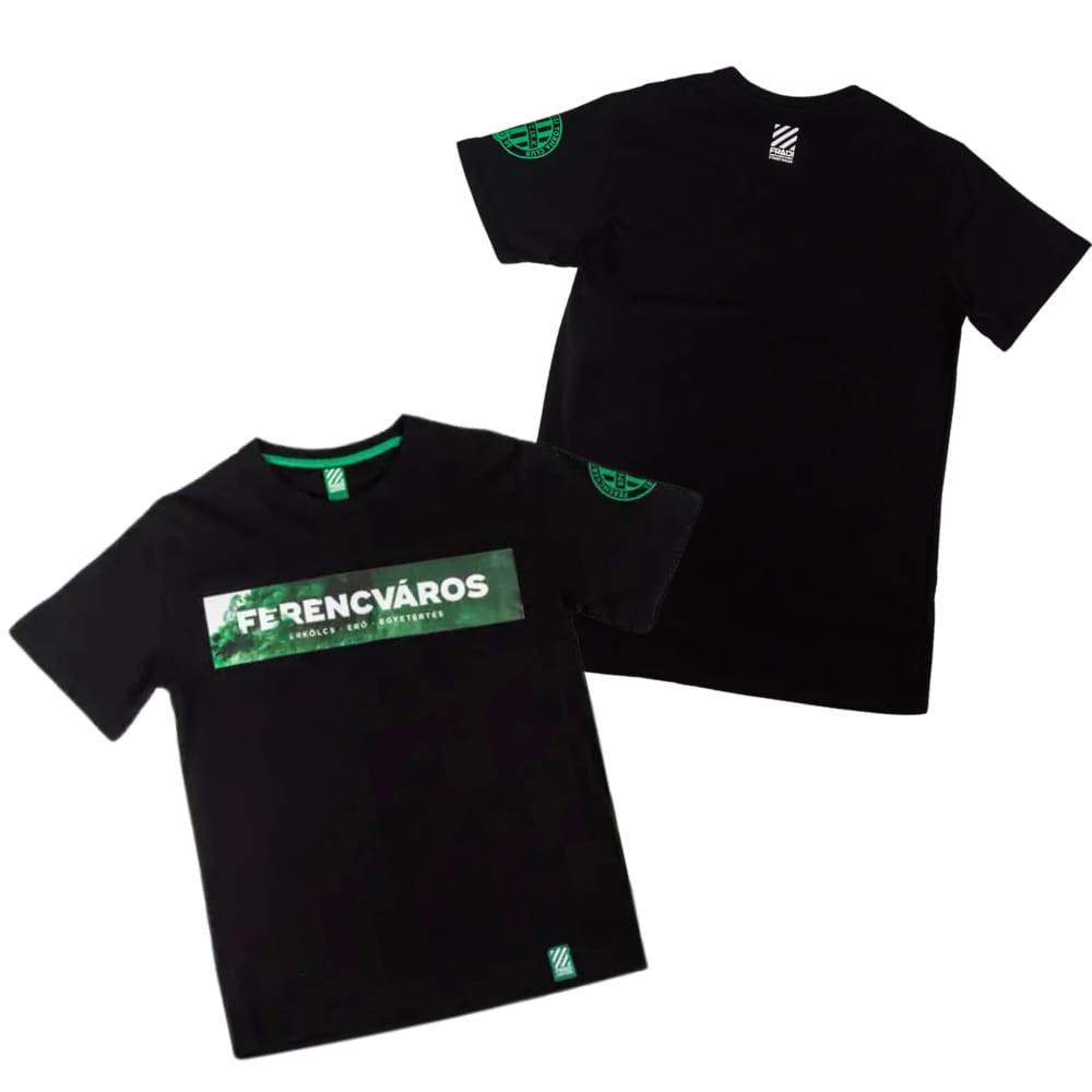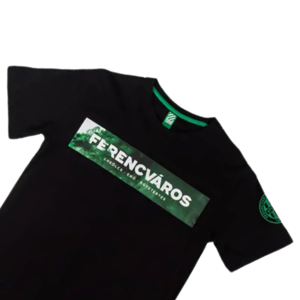 Fekete alapon, zöld háttérrel díszített Ferencváros férfi póló