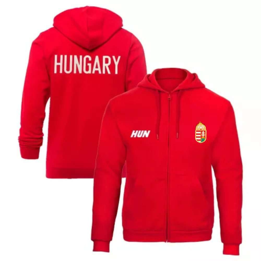 A pulóveren elől a HUN felirat és a magyar címer látható, míg a hátán a HUNGARY szó található, így mindenki számára egyértelmű lesz, hogy melyik csapatot támogatod.