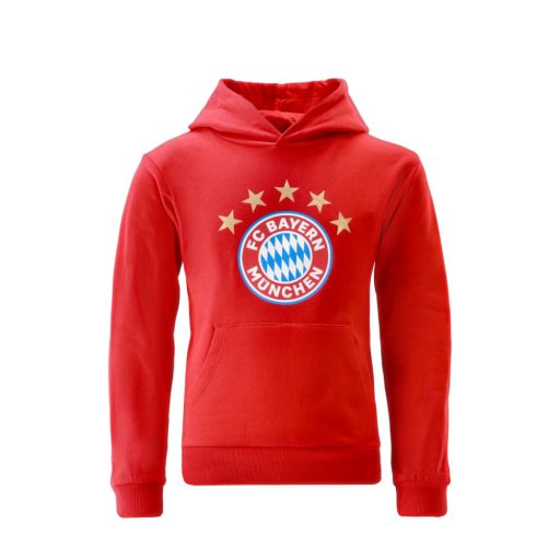 Színesítsd gyermeked ruhatárát ezzel a piros Bayern München kapucnis pulóverrel! A pulóvert a Bayern München címere és öt csillag díszíti , így mindenki számára egyértelmű lesz, melyik csapatnak szurkol a kis futballrajongó. A pulóver 100% pamutból l készült, ezért nem csak stílusos, de kényelmes is, így tökéletes választás lehet iskolába, edzésre vagy csak a szabadidő eltöltésére. Eredeti licenszes termék, közvetlenül Németországból. Egyedi felirat vagy szám is elhelyezhető rajta, hogy még személyesebb legyen. Légy te a pálya legmenőbb szurkolója ezzel a Bayern München pulóverrel!
