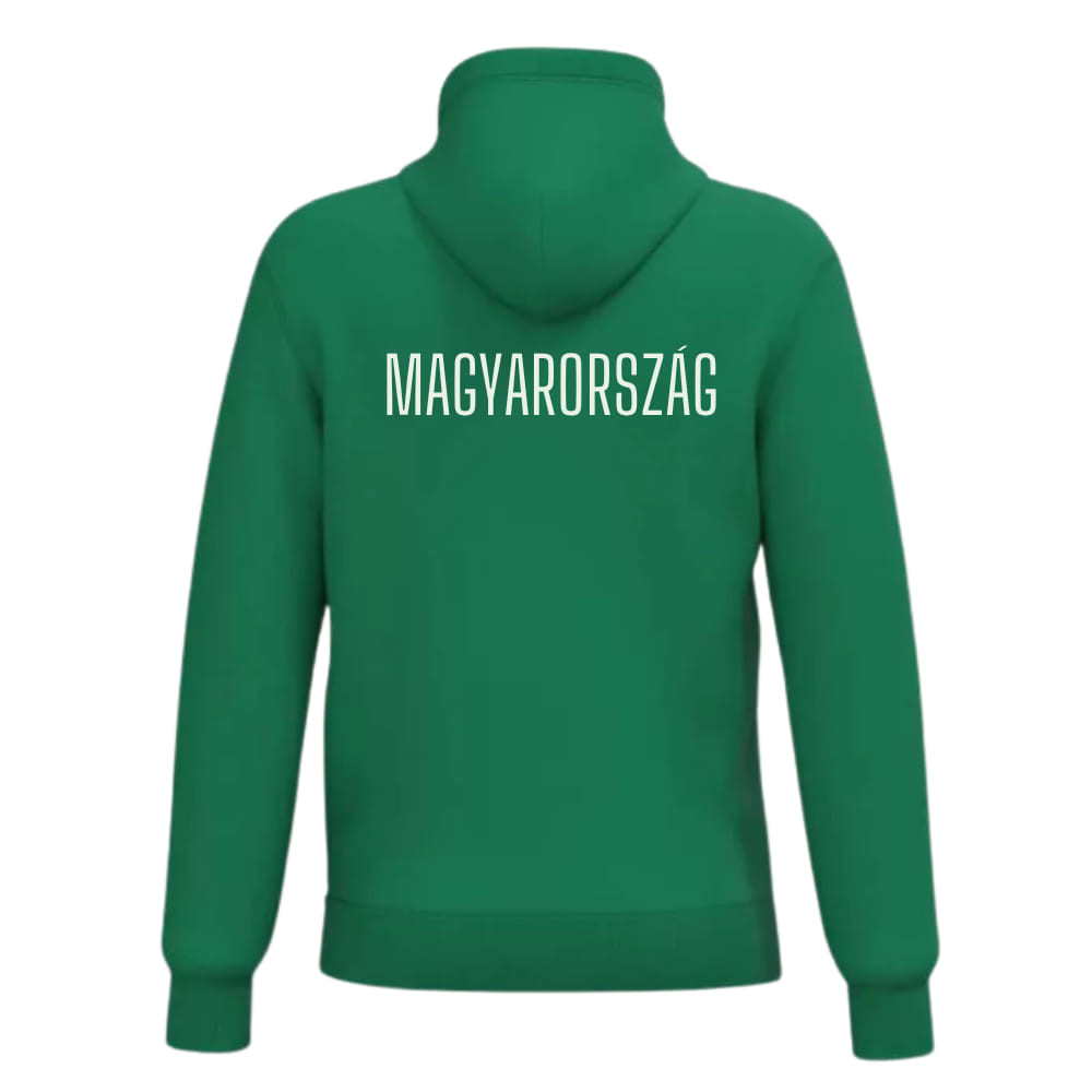 Hazafias stílus sportos kivitelben! Ez a zöld, cipzáras pamut pulóver a mellrészén „Magyarország” felirattal és a nemzeti címerrel díszített, így tökéletes viselet a szurkolóknak, sporthoz vagy hétköznapokra is.