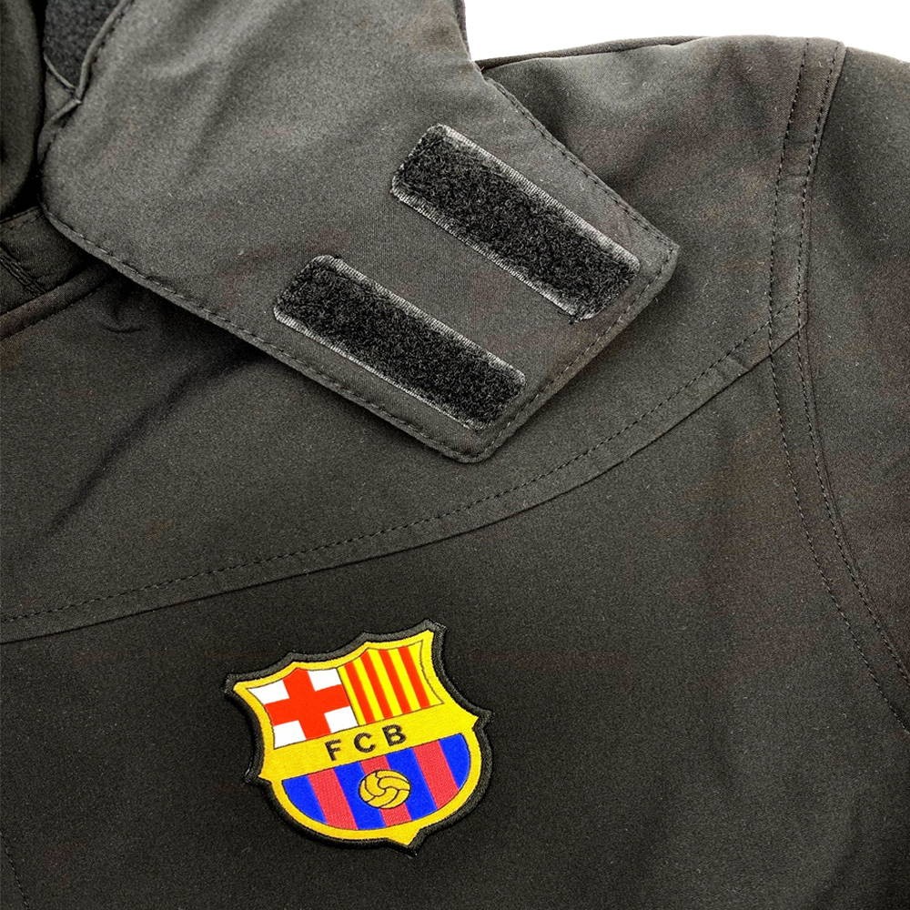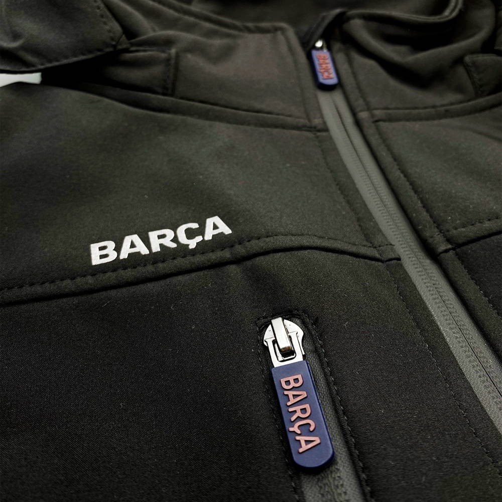 Védd magad a hidegtől stílusosan ezzel a fekete Barcelona softshell kabáttal! Ez a kabát nem csak, hogy kényelmes viselet hűvös időben, de emlékeztet a kedvenc futballcsapatodra is. Elöl három nagyméretű zseb található, így bőven van hely a személyes tárgyaidnak. Kapucnis kialakítása és az alul-felül összehúzható zsinór extra védelmet nyújt a szél ellen. Az ujján található tépőzár segítségével a csuklórész szélességét is beállíthatod, a kabát belső oldalán pedig polár hatású, nem kivehető bélés gondoskodik a melegről. Az elöl található Barcelona varrás és a zsebnél lévő dombornyomott Barca felirat pedig kifejezi a Barcelona iránti rajongásod. 100% poliészterből készült, eredeti, licenszes termék, egyenesen Spanyolországból. Ideális választás minden igazi Barcelona drukker számára!
