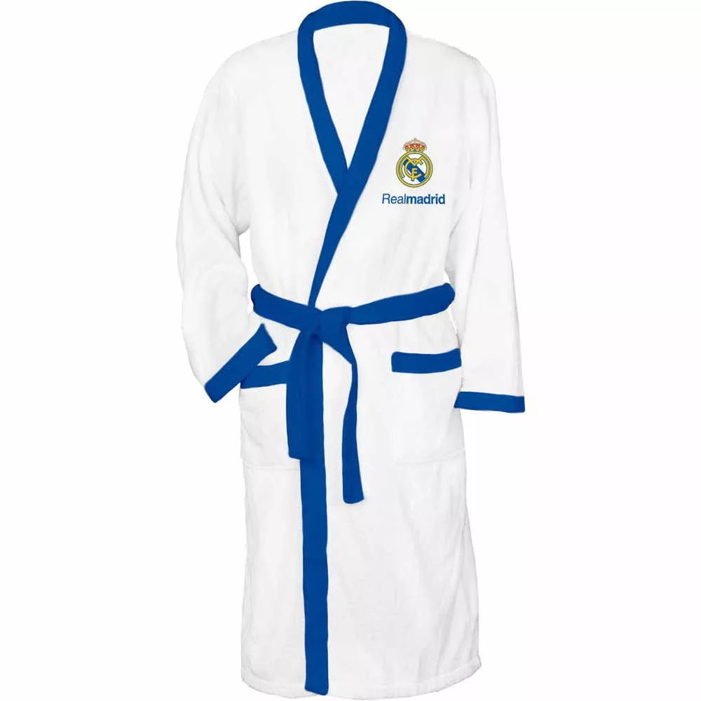 Egy iutballrajongónak nem hiányozhat a szekrényéből ez a színes, pamutból készült Real Madrid köntös! A kapucnit a fejére húzva egy igazi futballistának érezheti magát, miután kijött a zuhanyzó alól. A köntös fehér és kék színeivel azonnal felismerhető a híres klub színei, így biztosan nagy öröm lesz felvenni minden alkalommal. A köntös anyaga pamut, amely puha, kényelmes és jól szívja a vizet, így ideális fürdés után. Felnőtt méretben kapható.